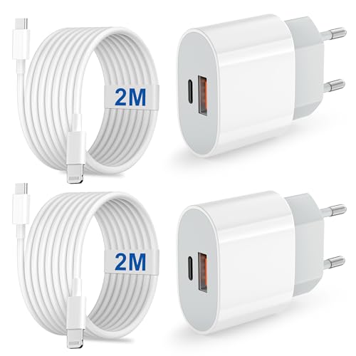 2 Pack Chargeur USB C, 20W 2 Ports Prise USBC Rapide Secteur Alimentation, Multi Secteur PD+QC Type C Adaptateur avec 2M Cable für Apple iPhone 17/17 Pro/17 Air/17 Pro Max/15/16/16 Plus/16 Pro Max