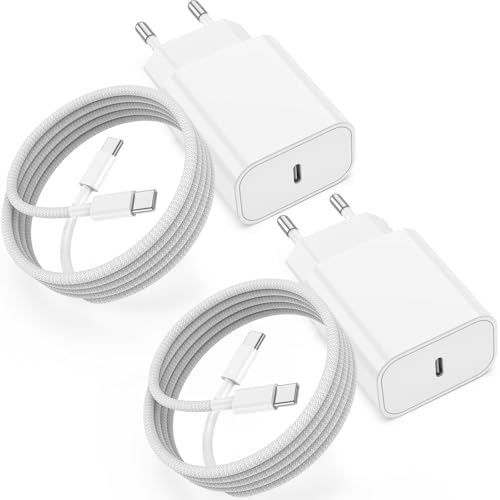 2Pack Chargeur iPhone 17 16 15 avec Cable de Charge, Chargeur Rapide USB C Original 20W avec câble USBC AUT C 2M Compatible avec Apple iPhone 17 Air/16e/15 /Pro Max/Plus, iPad Pro 12.9/11 10/Mini/Air