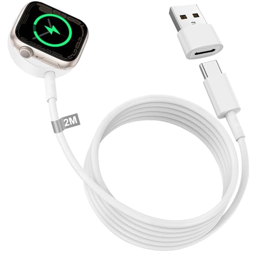 Chargeur pour Apple Watch, 2M Cable Apple Watch Chargeur Montre Magnitique Charge Rapide USB C iWatch Charger 2M Long Câble pour iWatch Serie 10/9/8/7/6/5/4/3/2/SE/Ultra