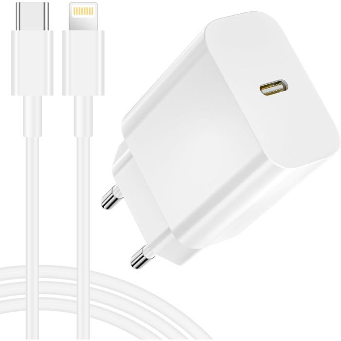 20W Chargeur Rapide pour iPhone 14/13/12/11/ Pro Max/XS/SE/X/iPad, [Certifié Apple MFi] Chargeur iPhone Rapide Chargeur iPhone Prise USB C Adaptateur Secteur et Câble USBC vers Lightning 2M