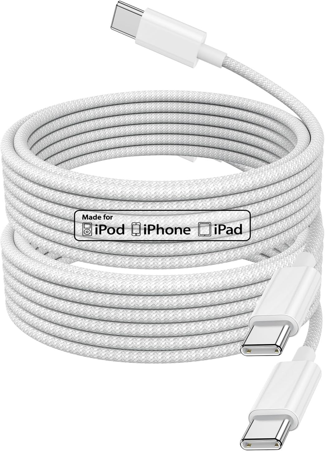 Lot de 2 Câble USB-C vers USB-C 2M 100W 5A Câble Chargeur Câble Charge Rapide Blanc pour Apple MacBook Pro, iPad Pro, iPhone 15, iPhone 16,Samsung Galaxy, Google Pixel, Xiaomi, Kindle