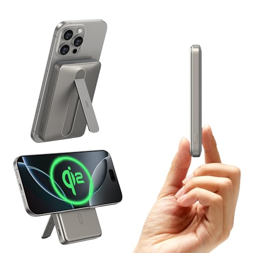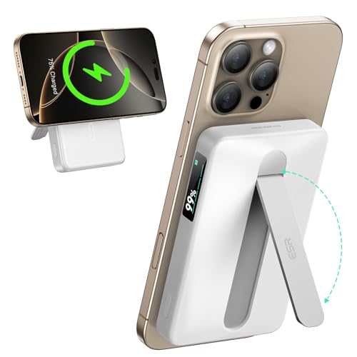 ESR Pack de Batterie MagSafe Certifié QI2, Chargeur Portable à Charge Rapide 5 000 mAh 15 W avec Béquille, Banque Externe Ultra-compacte de 0,60 po, Câble USB-C pour iPhone 17/16/15/14/13/12, Blanc