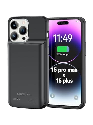 NEWDERY Coque batterie pour iPhone 15 Plus & 15 Pro Max, 5000 mAh, étui de chargement portable fin, chargeur d'alimentation rechargeable compatible pour iPhone 15 Plus & 15 Pro Max (6,7 pouces) (noir)