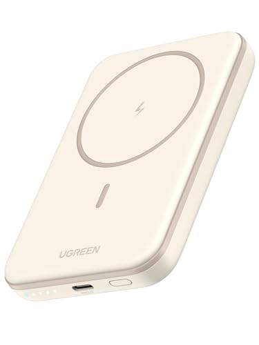 UGREEN Nexode Mini Batterie Externe 5000mAh 15W Compatible avec MagSafe iPhone 17 16 15 14 13 Air Plus Pro Max Power Bank Induction USB C Charge Rapide Chargeur Portable Magnétique sans Fil (Beige)