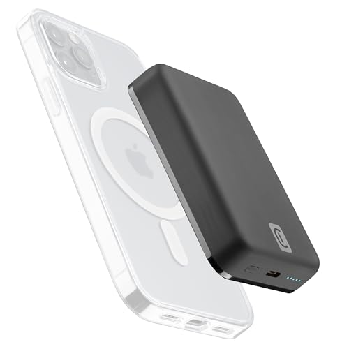 Cellularline | Wireless Power Bank MAG 10000 | Chargeur de Batterie Compatible avec système Mag Safe - Capacité 10000mAh - Charge sans Fil 7.5W - pour iPhone 12 et Versions ultérieures - Noir