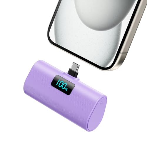 Mini Batterie Externe pour iPhone 5000mAh, Mise à niveau 15W PD 3.0A Charge rapide,Compact et Léger Power Bank Écran LCD Chargeur Portable Compatible avec iPhone 14/14 Pro Max/13/12/11/X/8/7/6-Pourpre
