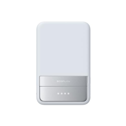 Batterie Externe magnétique EF EcoFlow Rapid 5000 mAh, Chargeur Portable sans Fil avec câble USB-C intégré et Support, Charge Rapide 30 W Max, Compatible avec iPhone 16/15/14/13/12-Argent