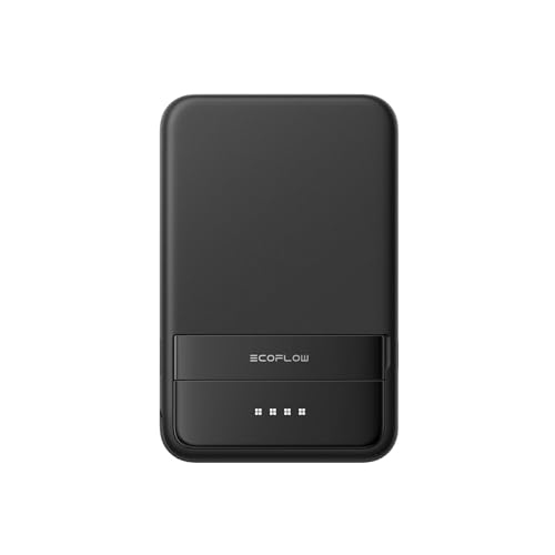 Batterie Externe magnétique EF EcoFlow Rapid 5000 mAh, Chargeur Portable sans Fil avec câble USB-C intégré et Support, Charge Rapide 30 W Max, Compatible avec iPhone 16/15/14/13/12-Noir