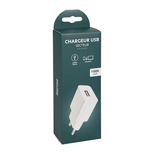 ITENSE - Chargeur USB Simple - Entrée USB - Chargeur 1000 mA - Permet de recharger Tous Vos appareils - Entrée : AC 100-240V 50/60 Hz - Sortie USB : DC 5V / 1000 mA - 1 Port de Sortie USB 1000 mA