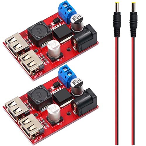 Youmile 2 PCS Module USB Buck, Convertisseur DC-DC Carte abaisseur Double alimentation USB Chargeur Régulateur de tension DC à DC Chargeur de voiture 6V-40V 3A Module d'alimentation solaire