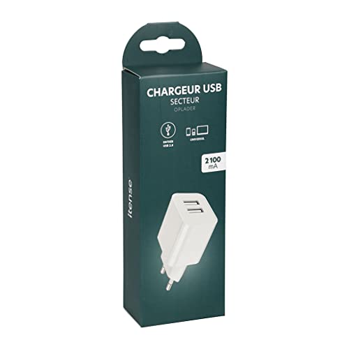 ITENSE - Chargeur USB 2100 mA - 2 entrées USB - Permet de recharger Plusieurs appareils simultanément- Puissance: 10.5W - Entrée : AC 100-230V 50/60 Hz - Sortie USB : DC 5V / 2100 mA