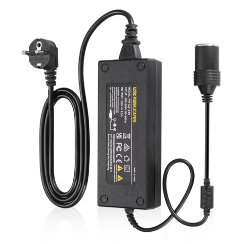 JIZZU 120W 10A AC à DC Adaptateur Converter, 230V à 12V Adaptateur Allume Cigare Secteur pour Voiture, Chargeur Secteur Transformateur Convertisseur pour Gonfleur Pneu, Aspirateur, Glacière