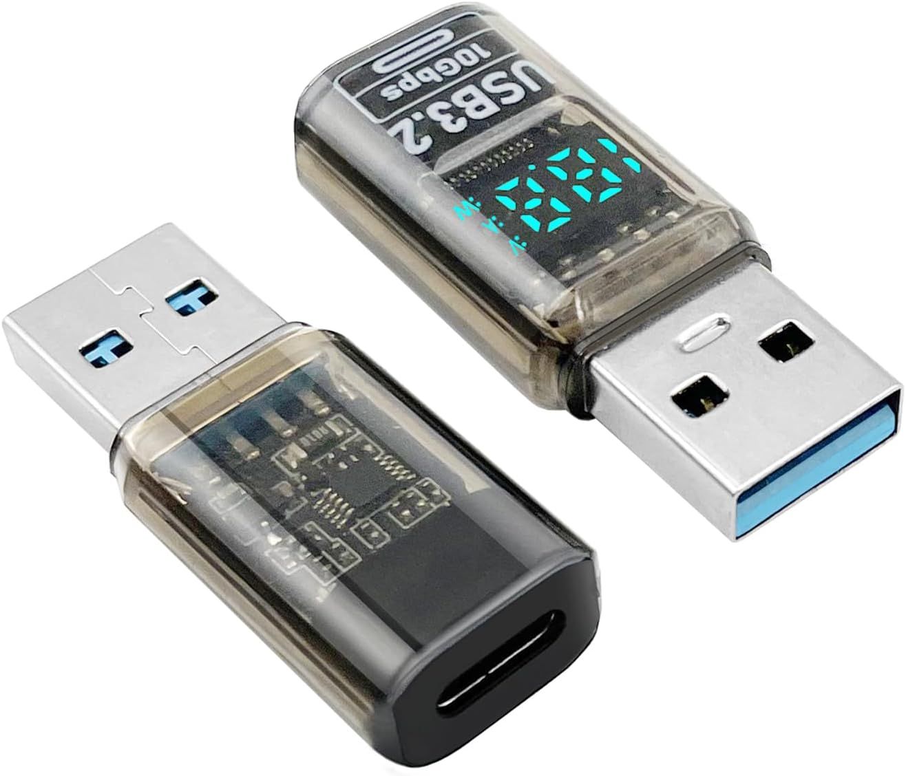 Hoembpn Adaptateur USB vers USB C 10 Gbps avec Affichage Numérique Tension/Courant/Alimentation Type C Femelle vers USB 3.2 Mâle Convertisseur Chargeur de Voiture pour MacBook/Samsung/iPad/QC3.0 36W/6