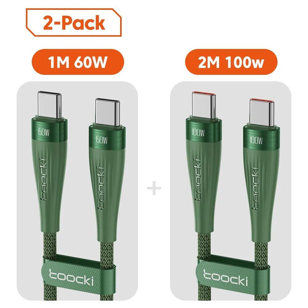 Toocki-Câble USB Type-C PD pour recharge rapide et transfert de données,cordon de chargeur pour Macbook,Huawei,Xiaomi,Samsung,2 pièces - Type 60W 1m 100W 2m Green