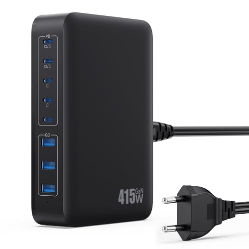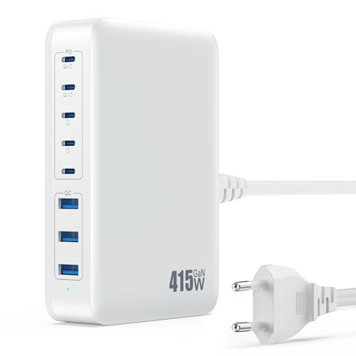415W Chargeur USB C, 8 Ports Chargeur Rapide GaN IV Tech Multiprise USB avec 5 C et 3 A Sorties, Deux PD 100W PPS Multiple Station de Charge Compatible avec MacBook Pro/Air Laptop, iPhone, Galaxy etc.