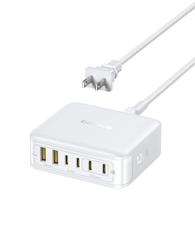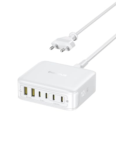 Baseus Chargeur USB C 120W, Station de Charge 6-Port, Chargeur Rapide pour iPhone 16/16 Plus / 16 Pro / 16 Pro Max/séries 15/14/ 13, MacBook Air, Pixel, Galaxy, iPad, et Autres