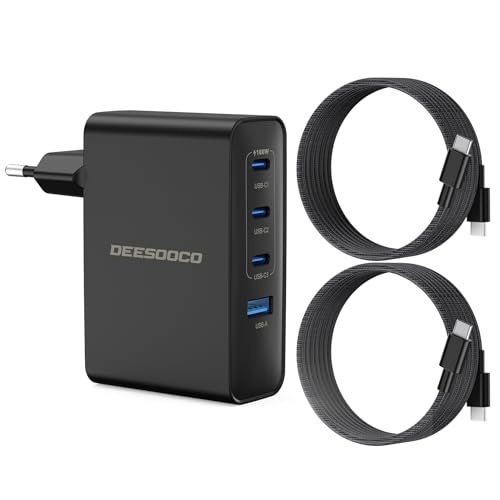 DEESOOCO Chargeur USB C 100 W pour Ordinateur Portable - 4 Ports GaN - Bloc d'alimentation Multiple - Deux câbles de 2 m - Adaptateur USB C Compatible avec MacBook Air Pro, iPad, iPhone 17,16, 15, 14