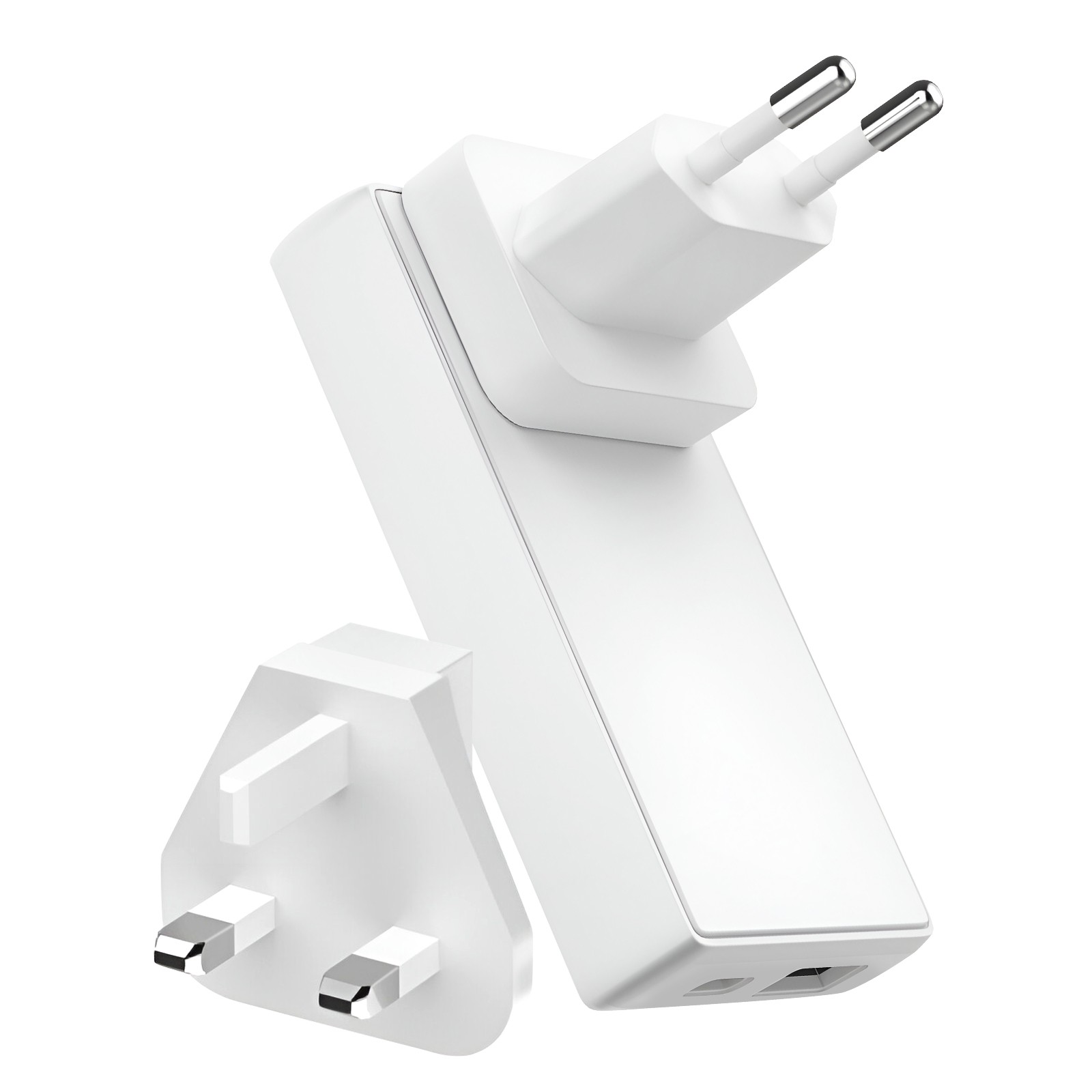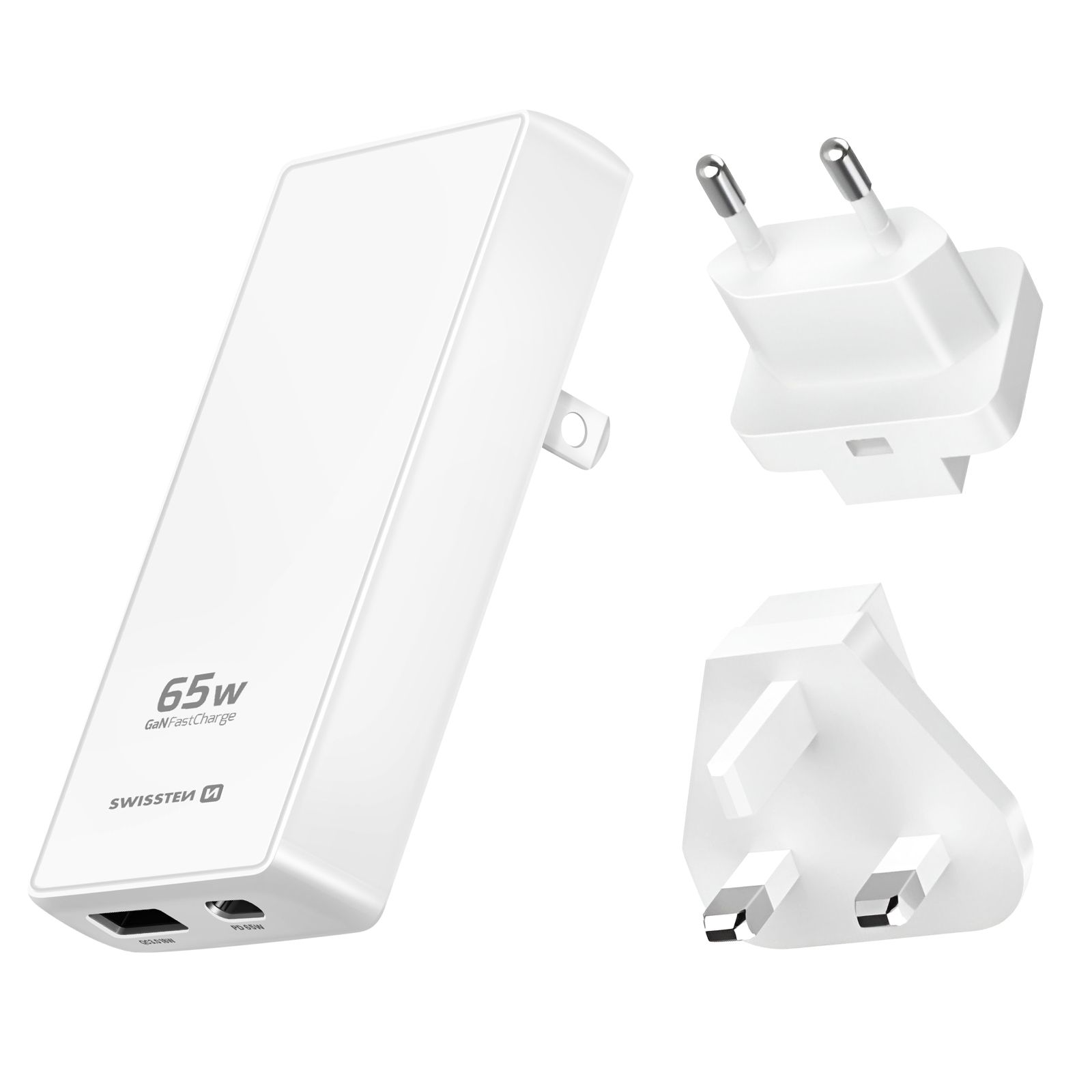 Chargeur de Voyage MacBook Laptop GaN 65W Port USB-C et USB Prises EU / UK / US Swissten Blanc
