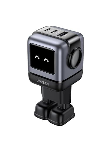 UGREEN Uno 65W 3 Ports Chargeur USB C Rapide GaNFast en Forme de Robot Mignon Compatible avec iPhone 17 Pro Max Air 16 15 14 13 Pixel Galaxy PSS 45W 25W S25 S24 S23 iPad MacBook Pro Air (Noir)