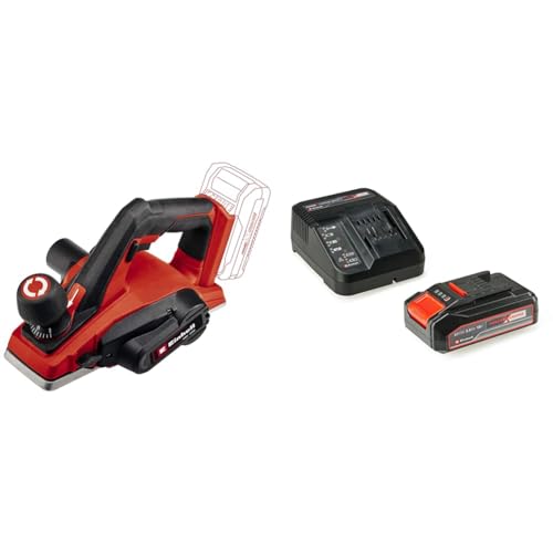 Einhell Rabot sans fil TE-PL 18/82 Li-Solo Power X-Change (profondeur de passe jusqu’à 2 mm, arbre porte fers de grande dimension, patin de repos automatique) avec Chargeur et Batterie 2,5Ah