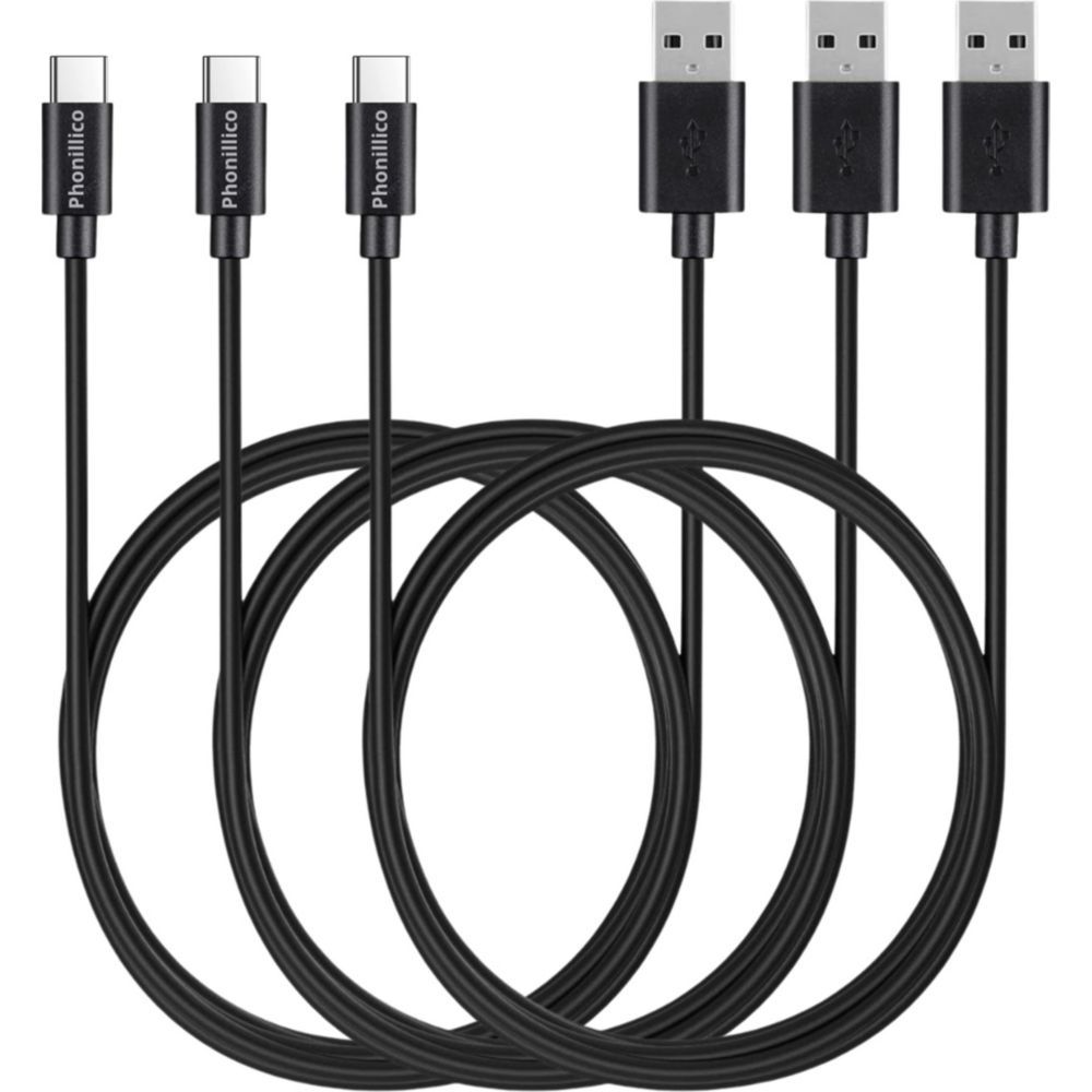 Lot 3 Cables USB-C Chargeur Noir pour Huawei P30 / P20 / LITE / PRO / P10 / P9 - Cable Type USB-C Mesure 1 Metre [Phonillico]