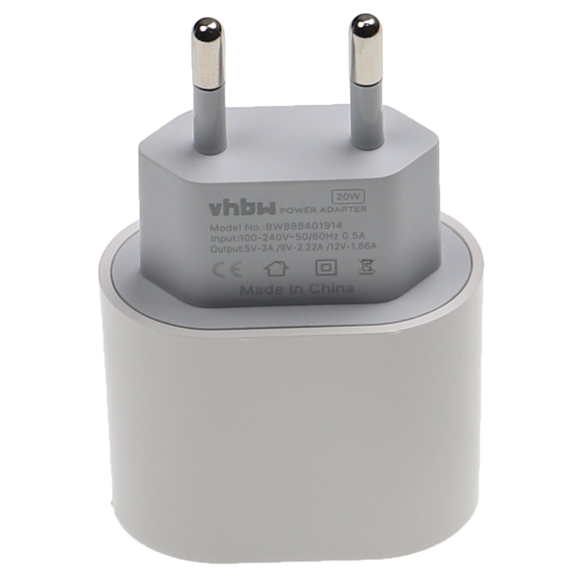 vhbw Chargeur secteur USB C compatible avec Huawei P20, P30, P40, P30 Pro, P30 Lite - Adaptateur prise murale - USB (max. 9 / 12 / 5 V), blanc
