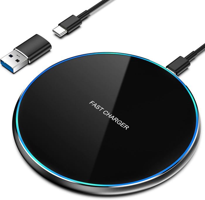Chargeur Induction 15W Chargeur sans Fil Charge Rapide pour iPhone 11 12 13 14 15 16 17 Pro Max Plus, pour Samsung Galaxy S25 Ultra S24 FE S23 S22 S21 Google Pixel 10 Pro 9 8 a 7 a (Adaptateur Inclus)