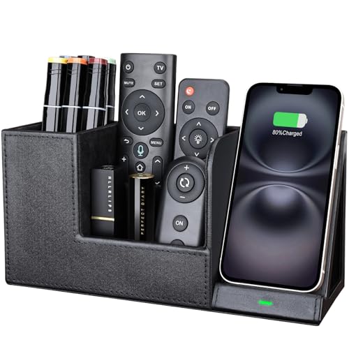 LADSTAG Organisateur de Bureau en Cuir, Rangement Bureau Organisateur Porte Stylo organiseur bureau avec Chargeur Induction pour iPhone 16 15 14 13 12 Pro Max Samsung Galaxy S24/S23/S22/S21/S20