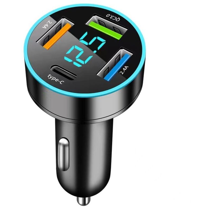 4 Ports Allume Cigare USB C, 66W QC3.0 ChargeurAallume Cigare & PD 30W Chargeur Voiture avec voltmètre LED pour MacBook Pro, iPhone, iPad, Samsung