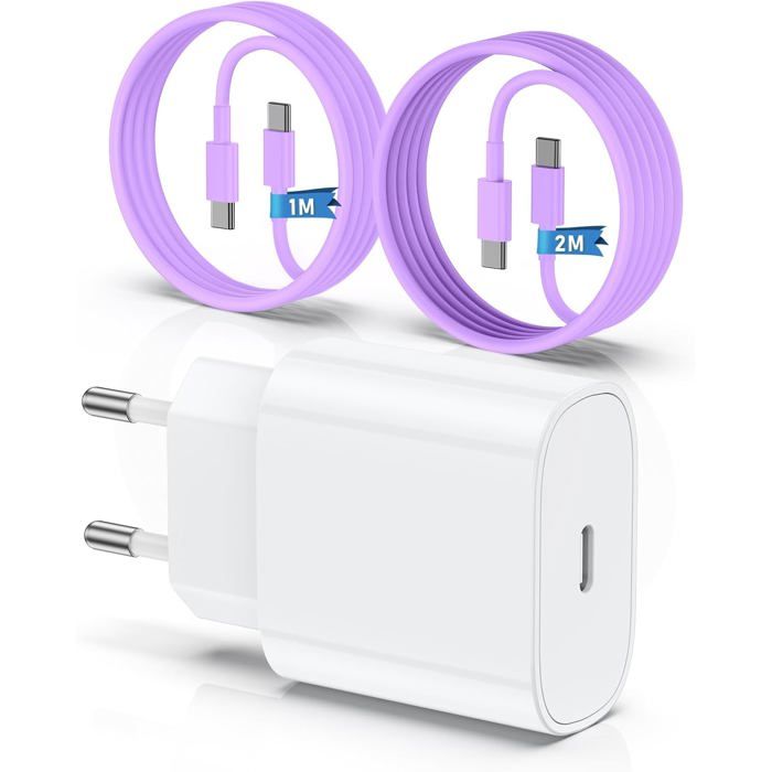 Chargeur Rapide iPhone 15 16 17, USB C Cable 2M et 20W USB C Chargeur pour Apple iPhone 17/17 Pro/17 Pro Max/16/16 Pro/15 Plus/15 Pro Max, iPad Pro/Air/Mini, Galaxy S23/S22, Prise Secteur Adaptateur