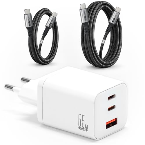 Chargeur USB-C 65W GaN 3 Ports + 2 Câbles USB-C 100W (1m + 2m) USB 3.2 Noir, Charge Ultra Rapide PD, 2 USB-C + 1 USB-A, Compatible MacBook iPhone Samsung