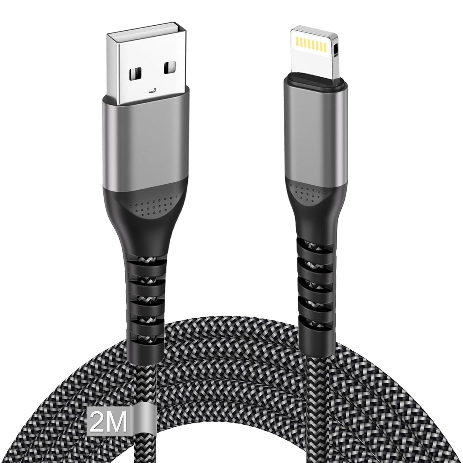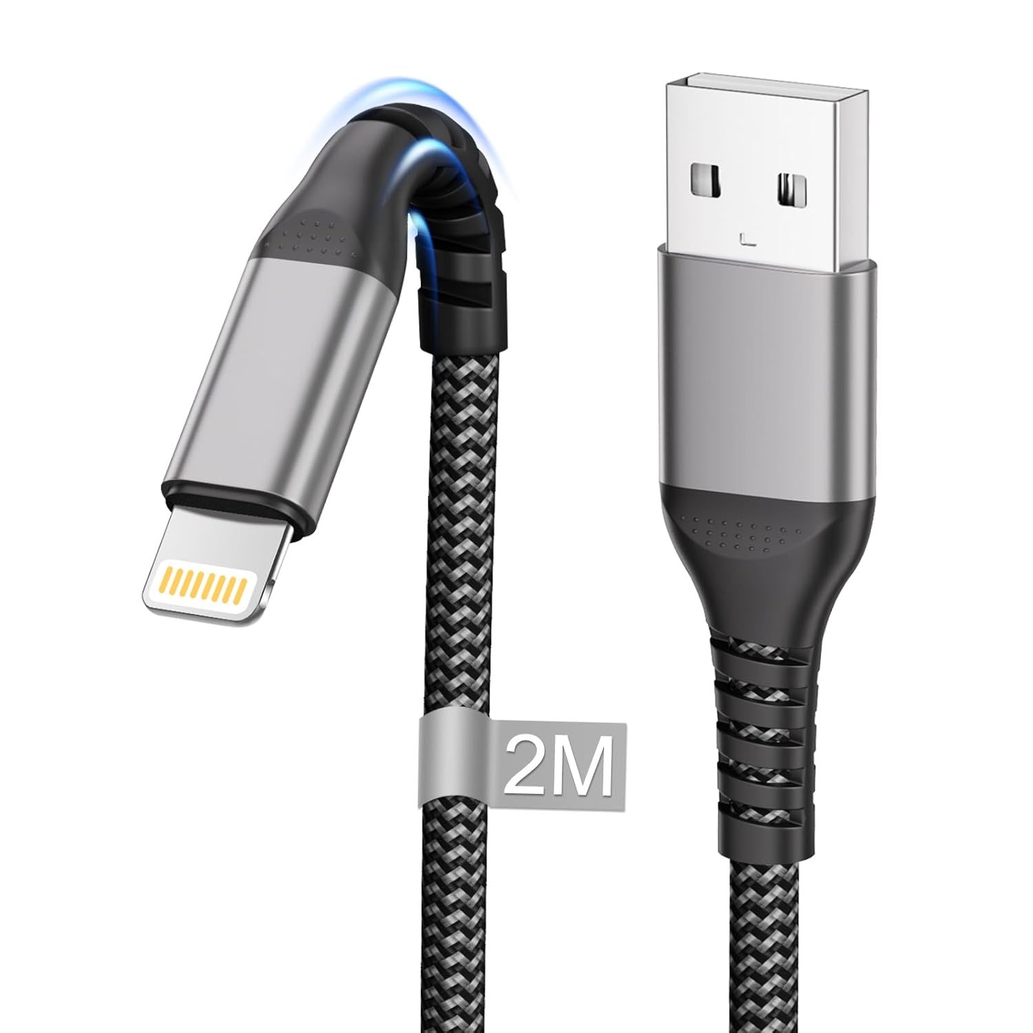 Câble iPhone 2M [Certifiés Apple MFi], Câble Chargeur iPhone 2M Long Câble Lightning USB Nylon Cable iPhone Chargeur Rapide Cordon iPhone Fil Chargeur pour iPhone 14/13/12/11/XS MAX/XR/X/8/7/6s/5s/SE
