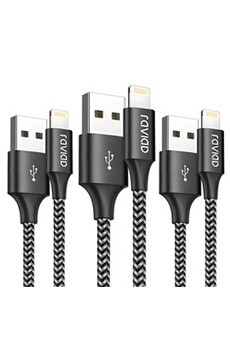 Câble iPhone Chargeur iPhone, [2m/Lot de 3] Câble Lightning Nylon Tressé Câble Charge Rapide, Noir
