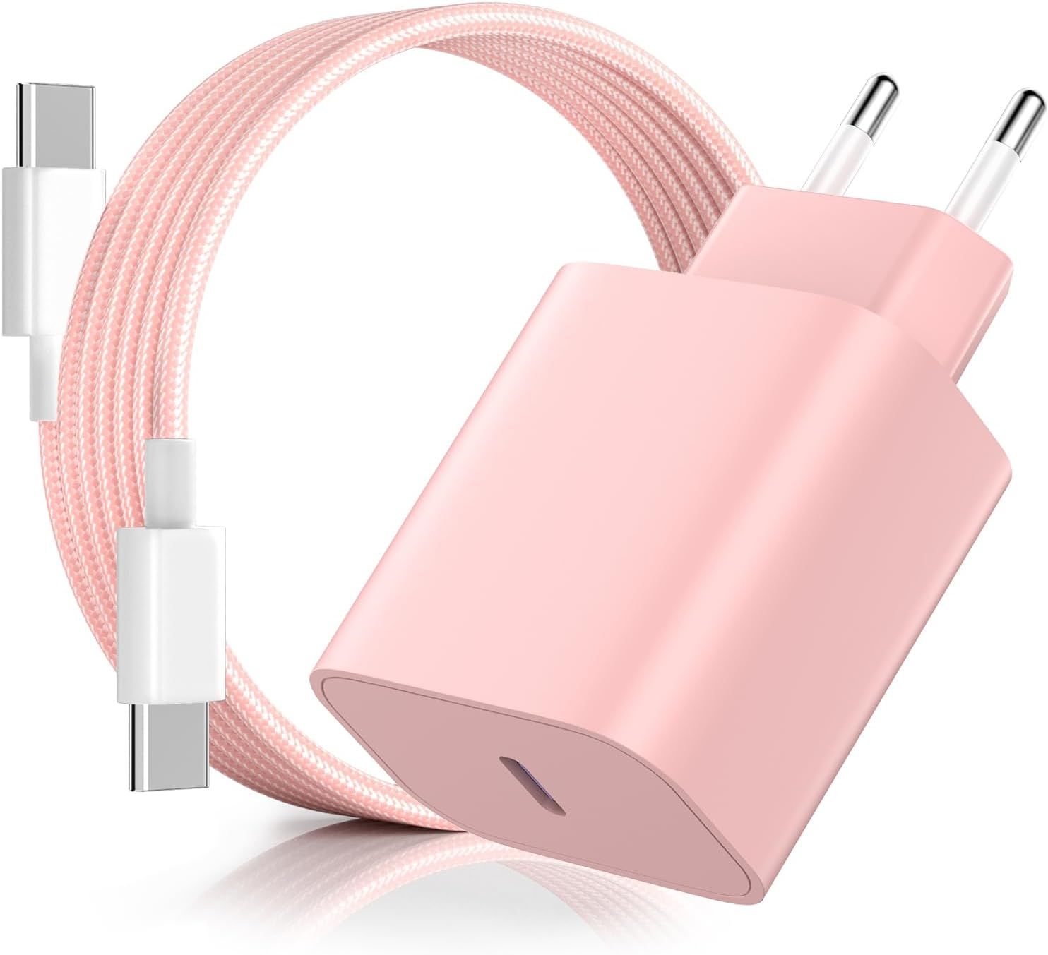 JGD-Chargeur pour iPhone Rapide, 20W PD3.0 Chargeur pour iPhone avec 2M Câble USB C, USB C Prise Charger Rapide pour Phone 16 Pro/16 Pro Max/16 Plus/15/15 Pro/15 Pro Max/15 Plus/Pad - Rose