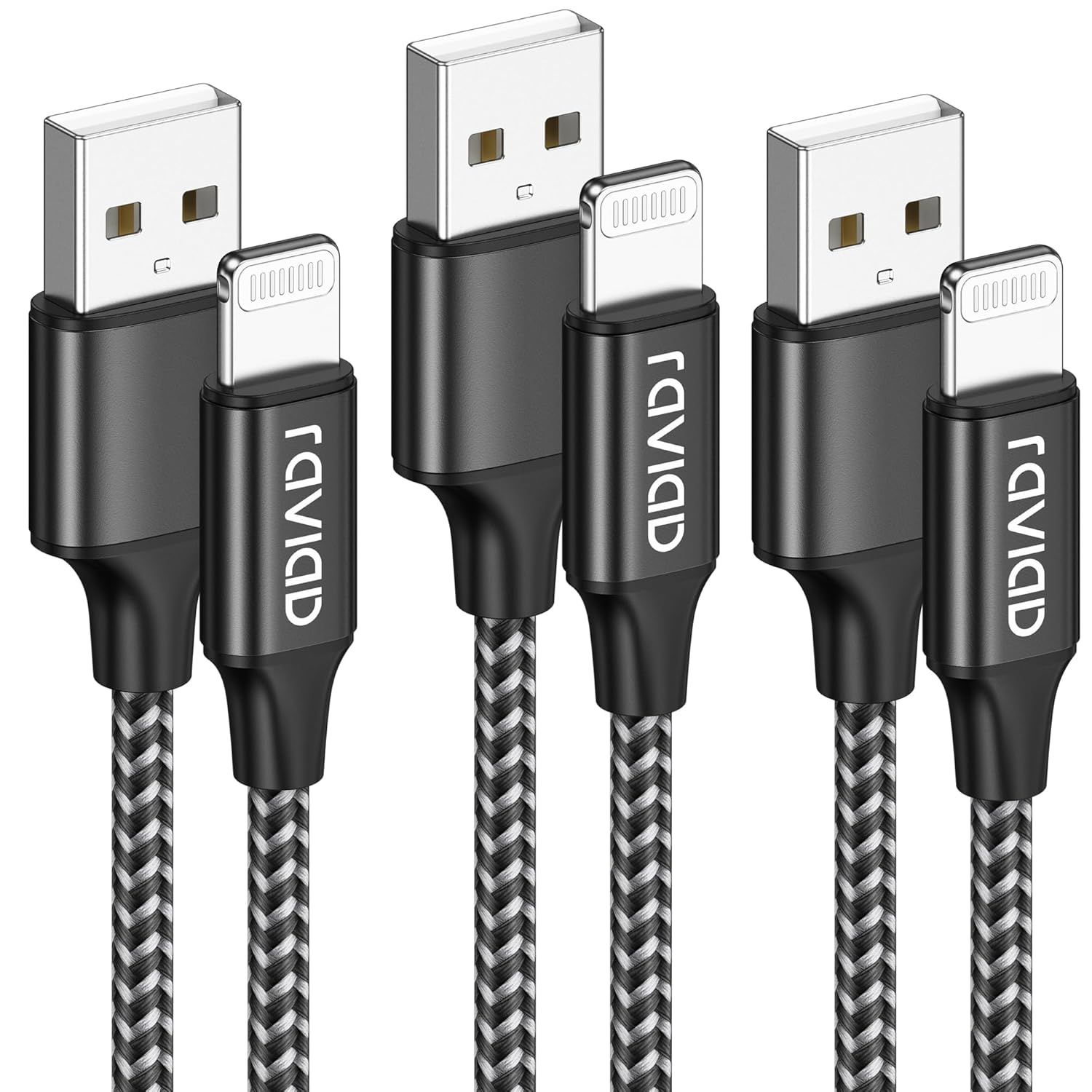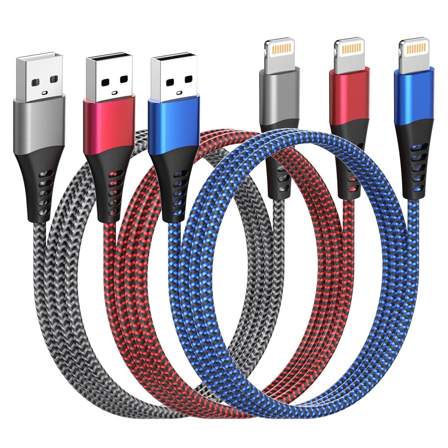 Bkayp Câble Chargeur iPhone, 2M/Lot de 3, Charge Rapide Cord Lightning Cable Compatible avec iPhone 14 13 12 11 Pro Max XR XS X 8 7 6 Plus SE
