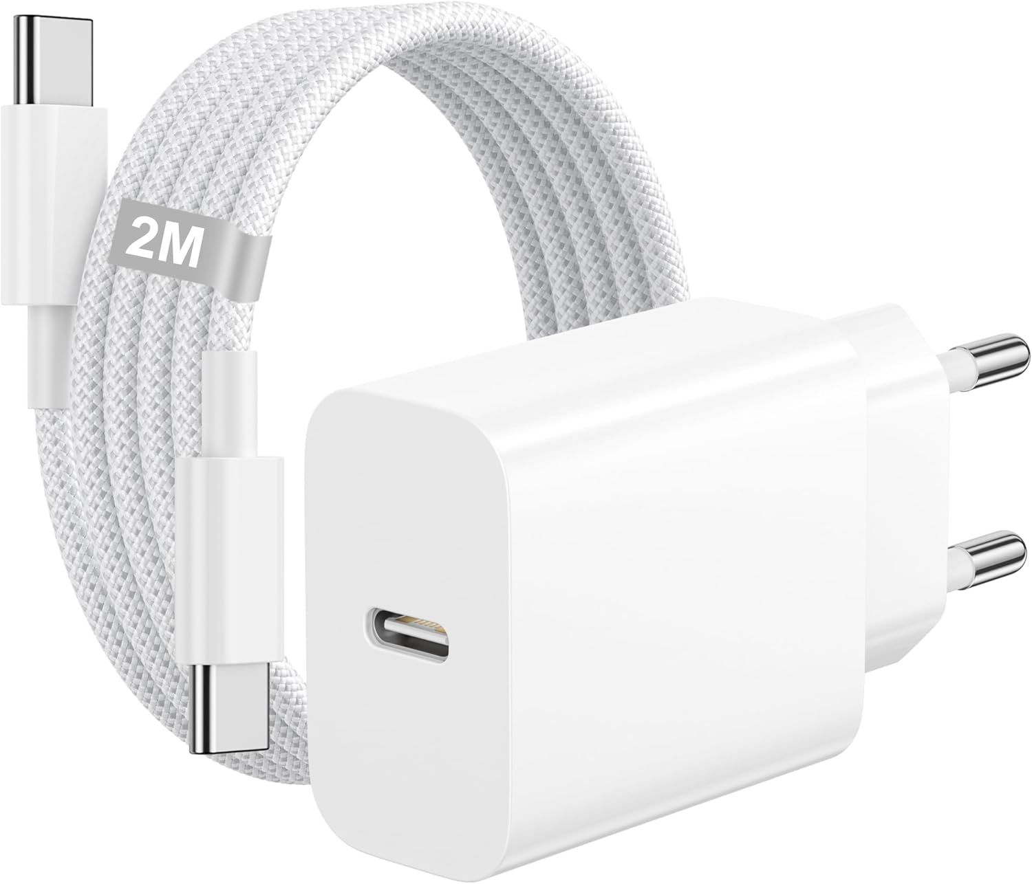 25W Chargeur USB C pour iPhone 17/17 Pro/Air/17 Pro Max/16e/16 Plus/16 Pro/16 Pro Max/15/iPad Air, Chargeur Rapide USB C Chargeur iPhone USBC mit 2M Geflochtenem USBC Kabel Charger USBC Rapide