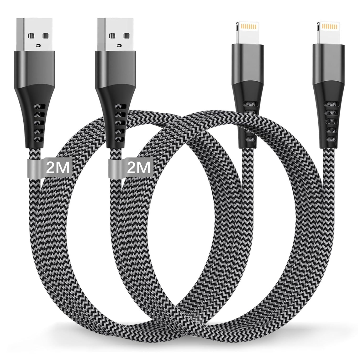 Câble Iphone,Chargeur Iphone [2M/Lot De 2] Câble Chargeur Lightning Nylon Tressé Usb Cable Iphone Charge Rapide Pour Iphone 14/13/13 Pro Max/12/12 Mini/12 Pro/11/11 Pro/Xs/Xs Max/Xr/X/8 Plus