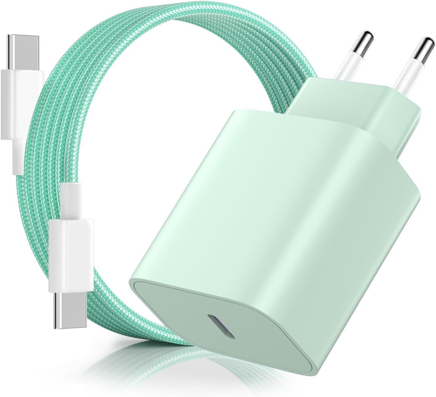 Chargeur pour iPhone Rapide, 20W PD3.0 Chargeur pour iPhone avec 2M Câble USB C, USB C Prise Charger Rapide pour Phone 16 Pro/16 Pro Max/16 Plus/15/15 Pro/15 Pro Max/15 Plus/Pad - Vert