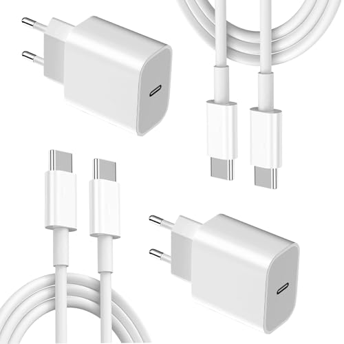 Chargeur Rapide pour iPhone 16/15, Adaptateur Secteur USB‑C 20 W avec 2M USB C vers C Câble Compatible avec iPhone 16/15 Pro/15 Pro Max/15/16 Plus/iPad Pro 12.9/11, iPad Air 5, etc. Prise USBC
