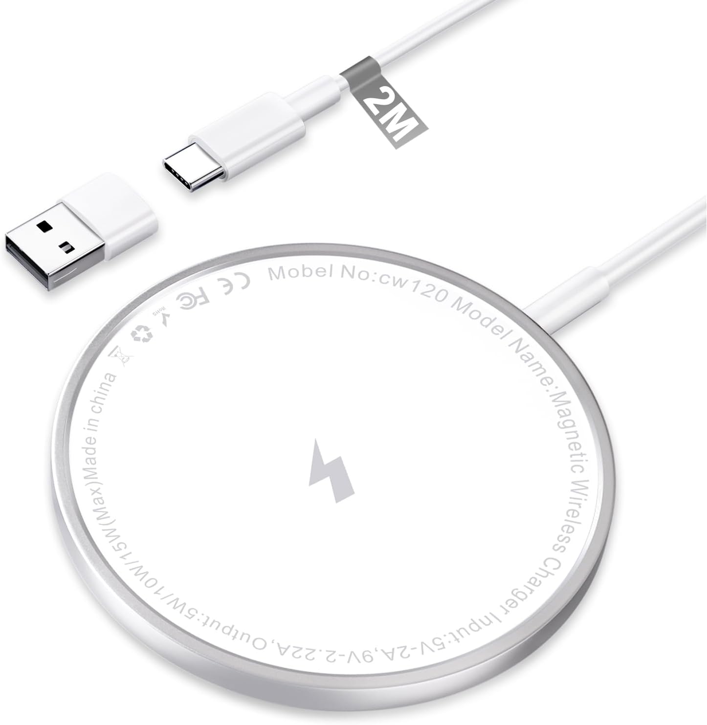 Chargeur Induction iPhone 2M, 15W Chargeur Mag-safe Charge Rapide pour IPhone 17/Air/16/16 Pro/15 Pro Max/15 Plus/15/14/14 Plus/13/12/11/Mini, Magnétique chargeur Sans Fil iPhone C hargeur a Induction