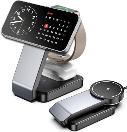 LULULOOK Qi2 Magsafe Station de charge 3 en 1, Chargeur Magsafe en aluminium pour Apple Watch et iPhone avec charge rapide 15W pour 17 Pro Max/17 Pro/17 Air/17, 5W pour Apple Watch Ultra, AirPods