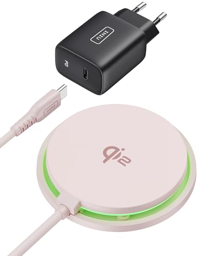 INIU Chargeur Induction iPhone Rose Clair, 15W Chargeur Rapide Certifié Qi2 Compatible Mag-Safe, Chargeur sans Fil pour iPhone 16 Pro 15 14 13 12 Plus, avec Câble USB-C et Adaptateur Inclus