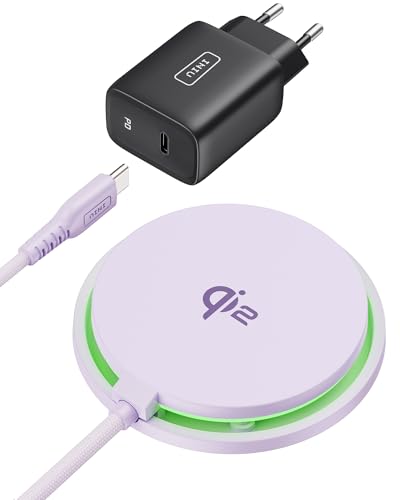 INIU Chargeur Induction iPhone Violet Clair, 15W Chargeur Rapide Certifié Qi2 Compatible Mag-Safe, Chargeur sans Fil pour iPhone 16 Pro 15 14 13 12 Plus, avec Câble USB-C et Adaptateur Inclus