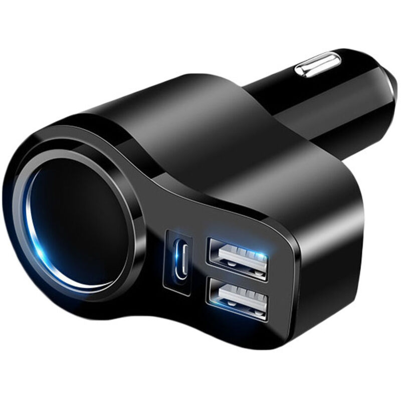 GuMosh Chargeur Allume-Cigare 3 Ports (USB-C) 65W+30W — Allume Cigare USB C, Prise Allume Cigare 12V–24V avec câble spiralé Type-C 1,5 m, Compatible iPhone 16/15/14/13/12, Galaxy S25/S24/S23/S22, GPS