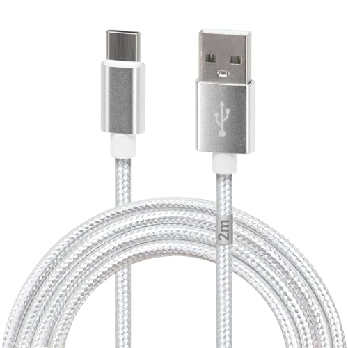 Waytex Câble USB C 3.1 vers USB pour Chargeur et Données, Longueur 2,00m, Fiche type C Mâle et type A Mâle, Gaine Nylon anti-rupture pour Iphone, Ipad, Samsung et tout appareil avec prise C, Blanc