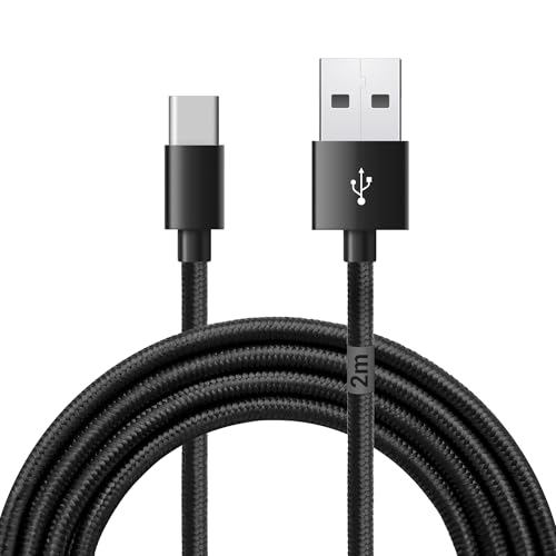 Waytex Câble USB C 3.1 vers USB pour Chargeur et Données, Longueur 2,00 m, Fiche type C Mâle, Fiche type A Mâle, Gaine Nylon anti-rupture Noir pour Iphone, Ipad, Samsung et tout appareil avec prise C