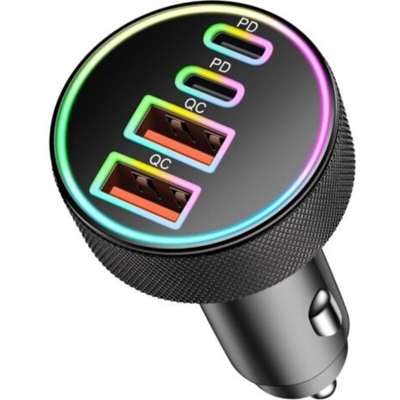 90W Chargeur Allume Cigare USB C, 4-Ports Double 45W USB-C/A, PD/QC Prise 12V Rapide Chargeur Voiture pour iPhone 17 Air16 15 14 13 12 11, Samsung