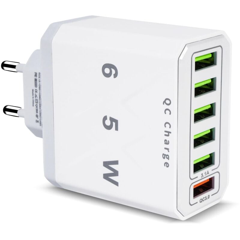 Aimoonsa – Chargeur USB 65W 6 ports QC 3.0 – Charge rapide pour iPhone 15/14/13/12/11/SE/XR, iPad, Samsung – Système de protection intégré