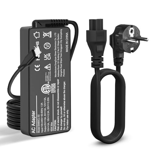 65W USB C Chargeur Adaptateur pour Lenovo Thinkpad X1 Carbon Gen 5 6 7 8, Thinkpad X1 Yoga Gen 2 3 4 ThinkPad S2 Yoga Gen 7 ADLX65UDGU2A Type-C Alimentation pour PC Ordinateur Portable