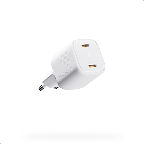VOLTME Chargeur USB-C Double 30W GaN, Prise Charge Rapide Blanc PD3.0 PPS Noir Compact et Portable Compatible avec MacBook Air, iPhone 14/13/Pro/Pro Max/Mini/12/11, Samsung, Xiaomi avec Huawei